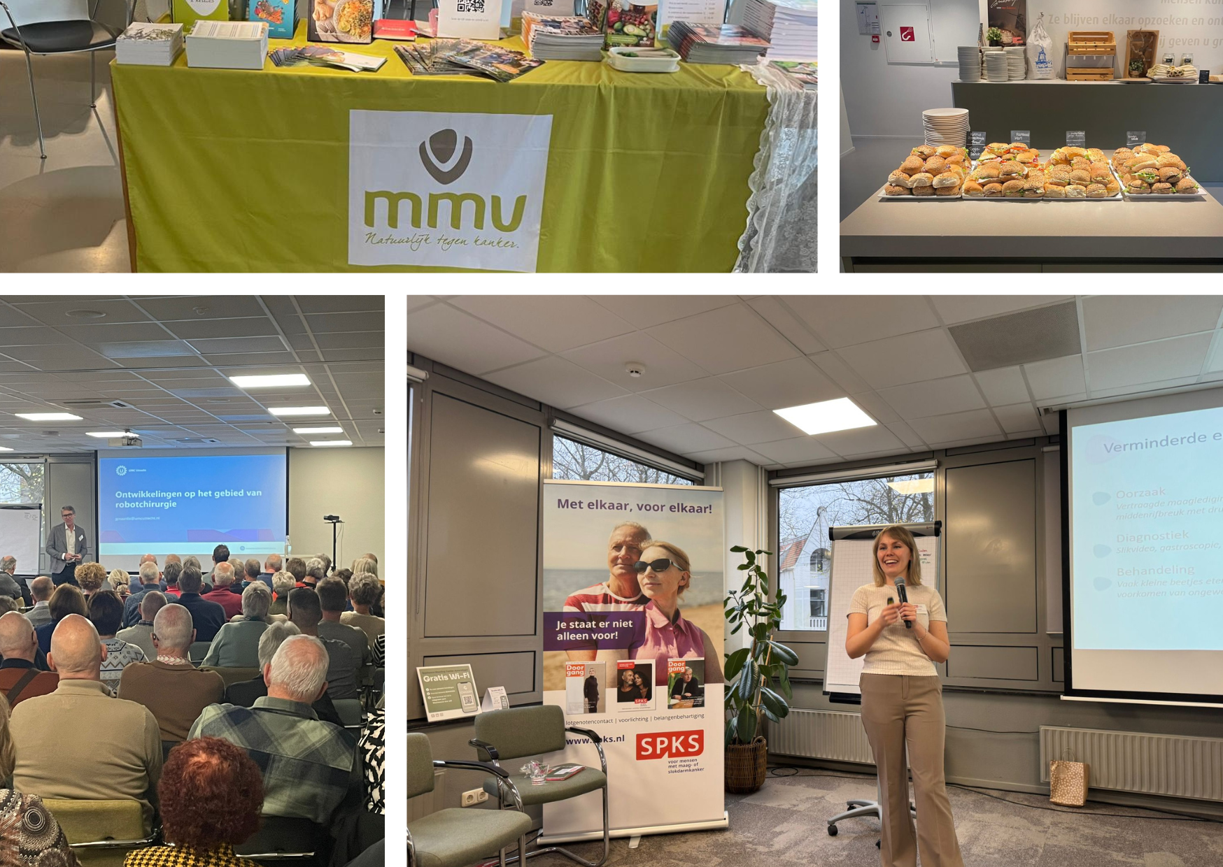 Op 9 november 2024 vond de landelijke contactdag van onze patiëntenvereniging plaats in De Eenhoorn in Amersfoort, met 150 donateurs en partners in aanwezigheid. De dag begon met een gezellige ontvangst en lunch van 12.15 tot 13.00 uur, waarbij de eerste gasten al om 11.30 uur binnenstroomden. Om 13.00 uur opende de voorzitter de middag, waarna de eerste presentatie over robotchirurgie volgde. Na de pauze werd de vernieuwde buismaagbrochure gepresenteerd. Vervolgens splitste de groep zich in twee sessies: één over functionele klachten en de ander over de stand van zaken rondom buddyzorg binnen de vereniging. De MVV was aanwezig met een kraampje met waardevolle informatie en kookboeken over voeding bij kanker, wat een mooie aanvulling was op de dag. We sloten de middag af met een drukbezochte borrel.