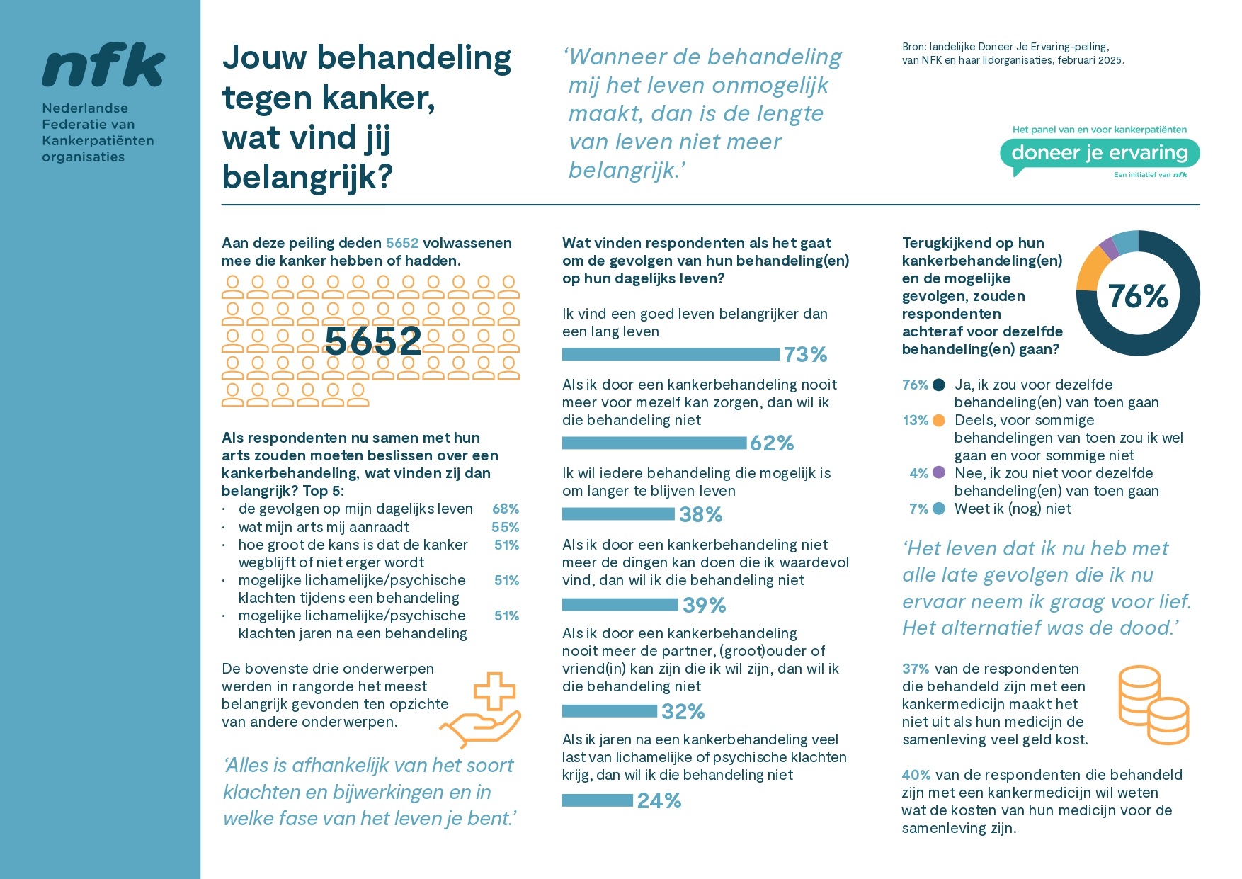 De resultaten van Doneer je Ervaring – Jouw behandeling tegen kanker, wat vind jij belangrijk? is bekend.